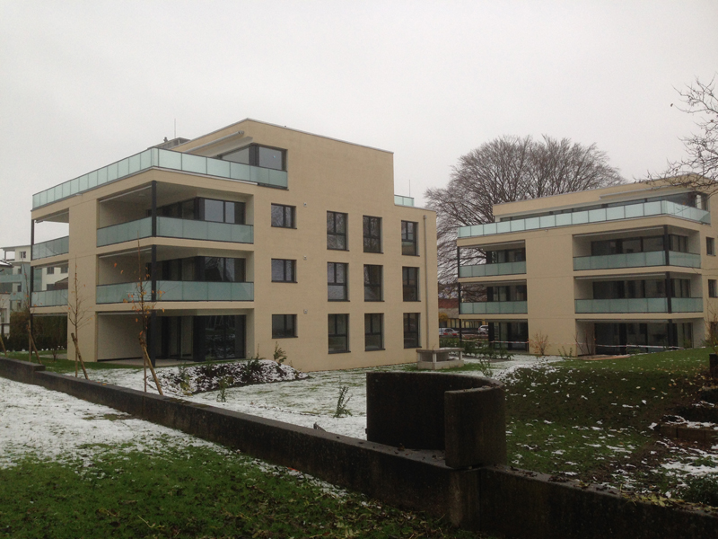 Die zwei modernen Mehrfamilienhäuser mit Autoeinstellhalle wurden mit Sorgfalt um eine riesige altehrwürdige Rotbuche erstellt, welche zu einer Parkanlage gehörte.